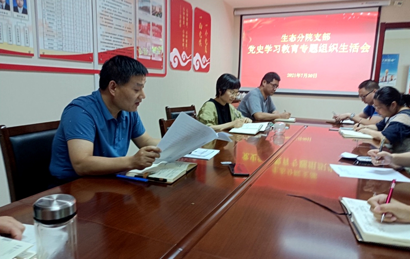 为了深入推进党史学习教育,按照中央、省厅、江河中心党委及院党总支安排,根据《关于召开党史学习教育专题组织生活会有关事项的通知》要求,生态分院党支部于7月30日在党建工作室开展了党史学习教育组织生活会。会议由支部书记潘文学主持,支部全体党员参加。