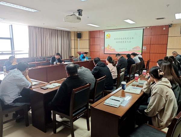 11月8日上午,水利水电分院党支部召开四季度党员大会,会议由支部书记方圆主持,全体党员参会。