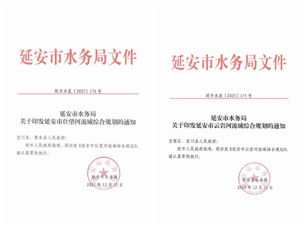 近日,我公司编制的《云岩河流域综合规划》和《仕望河流域综合规划》经延安市人民政府同意,延安市生态环境局出具规划环评审查意见,由延安市水务局批复印发。