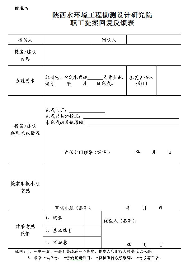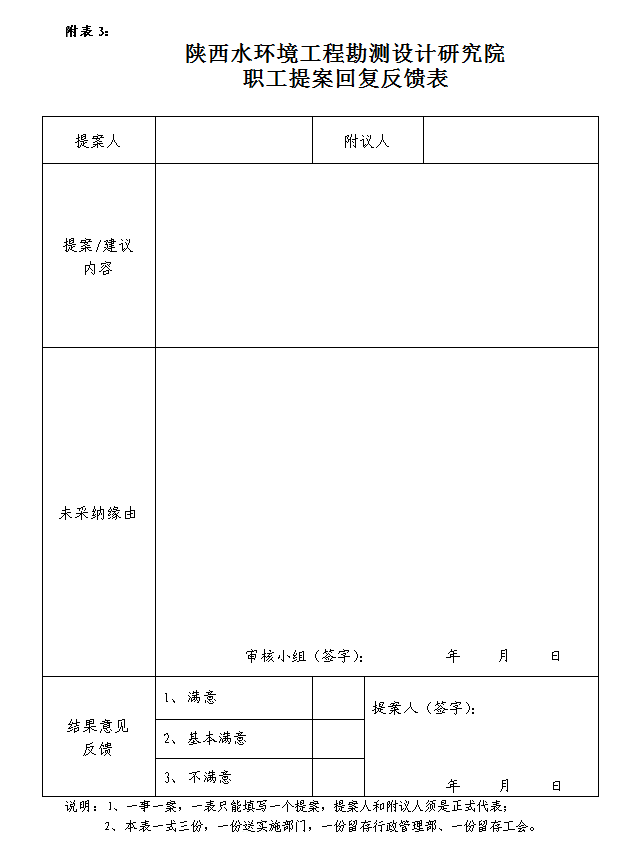 2.3 职工代表大会提案应在制式的提案表(附表1)上书写,允许另附页补充,主要包括以下三个内容: