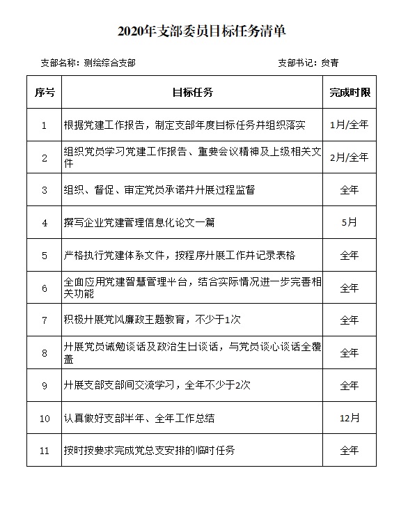 2020年测绘综合支部委员目标任务清单(贠青)