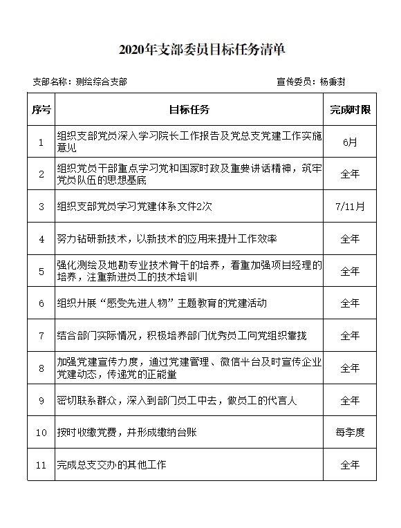 2020年测绘综合支部委员目标任务清单(杨秉澍)