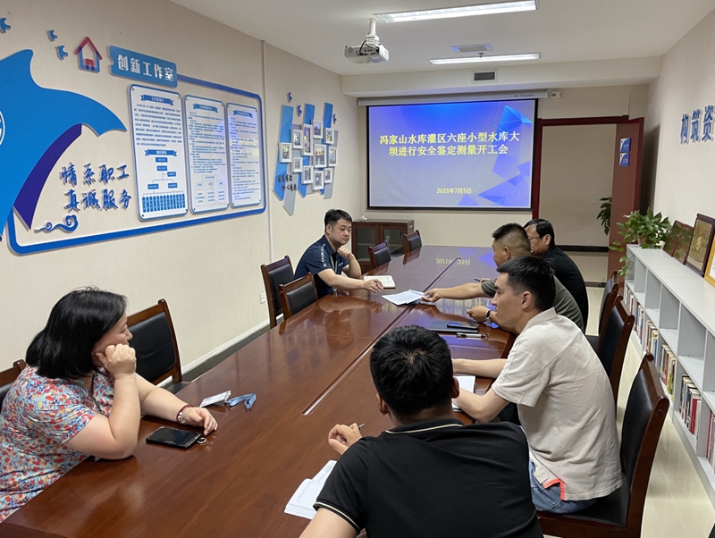 7月5日下午,勘测科技公司召开《冯家山水库灌区6座小型水库大坝进行安全鉴定测量》项目开工会,会议由经理杨秉澍主持,生产技术部测量设总刘迎新,设计人员及项目组成员参会。