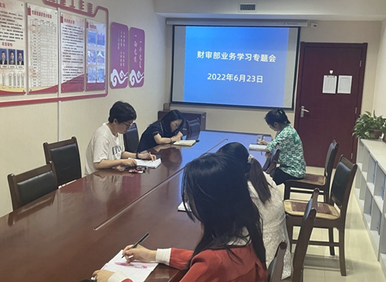 6月23日下午,财务审计部主任王小芹在八楼党建会议室主持召开业务学习专题会,部门全体员工参加会议。