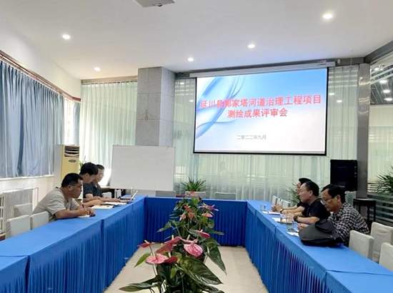 会上,以《延川县清涧河郭家塔段河道治理工程》测量项目为例,首先由勘测组组长李新兴,对项目存在的问题、修改情况等进行了汇报,阐述了问题出现的原因,以及解决方法。