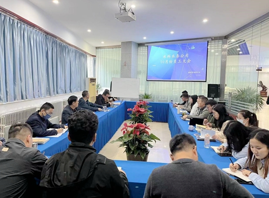 10月11日上午,水科水务公司在会议室召开10月份员工大会,会议由总经理黄永成主持,公司董事长李均安、副总经理王张斌、总工程师娄峰出席会议,全体员工参会。