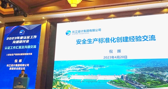 按照设计院工作安排,生产技术部主任秦勇、行政管理部主任高文娟、测绘专总柏鲁于4月20日-21日参加了北京中水源禹认证有限公司组织召开的“2023年度认证工作沟通研讨会”。参会的行业领导有水利部水利水电规划设计总院副院长王志强、长江设计集团有限公司副总经理陈又华、湖北省水利水电规划勘测设计院院长李瑞清等。