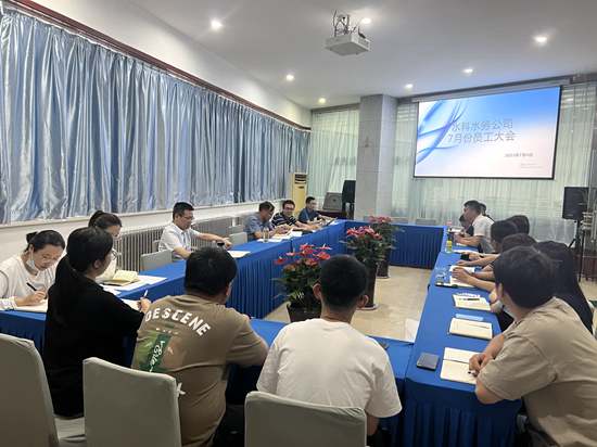 7月4日下午,水科水务公司在会议室召开7月份员工大会,会议邀请主管院领导余金龙副院长参会,总经理王张斌主持会议,全体在岗职工参会。