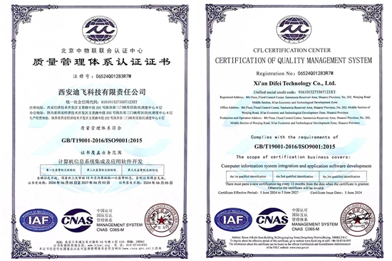 近日,迪飞公司通过了ISO9001:2015质量管理体系换证审核,并获得质量管理体系认证证书。这标志着迪飞公司质量管理体系运行有效,能够持续、稳定的为客户提供高质量的服务。