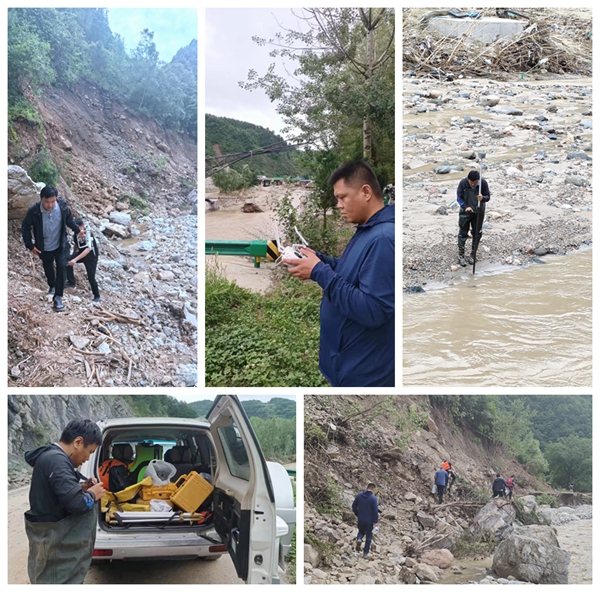 19日清晨,曙光未现,他们已奔赴灾情第一现场。面对复杂而危险的环境,他们毫不退缩,有条不紊地开展断面测量和洪痕调查工作。下午,当道路中断、通讯受阻,他们没有丝毫犹豫,选择徒步十余公里采集宝贵的数据。他们的脚步坚定而执着,每一步都承载着责任与担当。