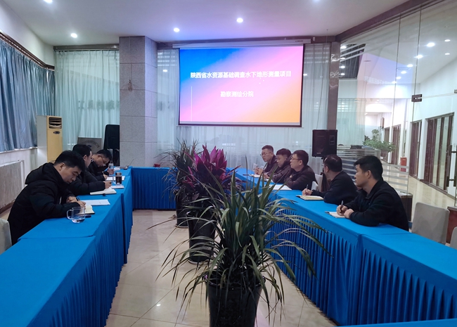 12月23日上午,勘察测绘分院召开《陕西省水资源基础调查水下地形测量项目》项目开工会。本次项目由杨院长亲自担任项目负责人,副院长王海涛担任项目设总,总工张宇负责各项技术事宜。