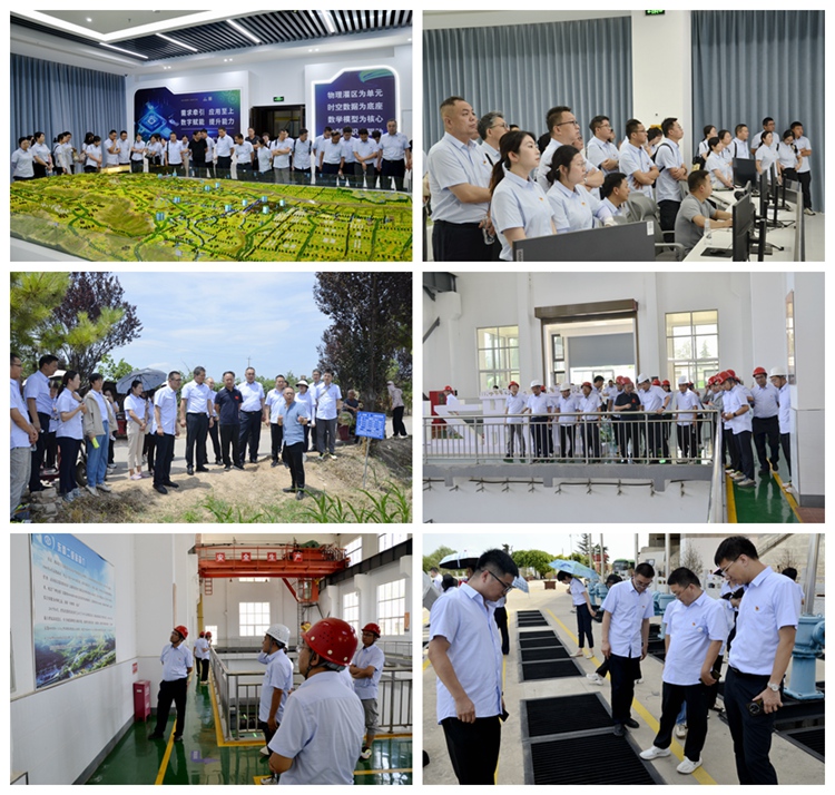 本次活动选址渭南市合阳县东雷抽黄灌溉中心及灌区。活动伊始,全体人员首先参观了东雷抽黄数字灌区调度中心与党员活动室,借助直观的沙盘模型和数字化孪生平台演示,系统了解调度中心在动态跟踪旱情、精准配置用水需求、智能调度水资源及远程监测设备运行等方面的创新实践。在坊东小高抽高效节水示范点,实地观摩节能灌溉技术助推当地群众高效灌溉持续增收。在东雷一级站、东雷抽黄工程展览馆内,通过大量的珍贵史料、照片和雕塑,伴随馆员的讲解,深入回溯上世纪 70 年代秦东人民自力更生、攻坚克难,引黄河水上黄土高塬,践行 “让黄河成为造福人民的幸福河” 伟大使命的壮丽历程。