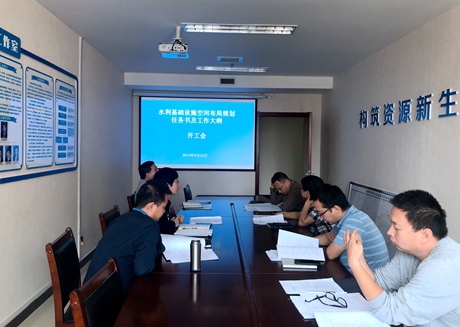 针对该项目的开展,我院抽调专业技术人员组成项目组并安排先期开展任务书和工作大纲的编制工作。9月23日,项目组召开开工会,与会人员对《水利基础设施空间布局规划编制工作方案(征求意见稿)》《水利基础设施空间布局规划技术大纲(征求意见稿)》进行了专题讨论学习,并对该规划涉及的6个方面进行了初步人员分工。