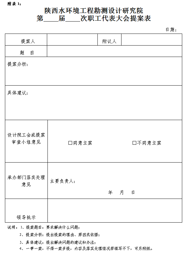2.3 职工代表大会提案应在制式的提案表(附表1)上书写,允许另附页补充,主要包括以下三个内容: