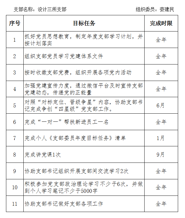 2019年支部委员目标任务清单--娄建民