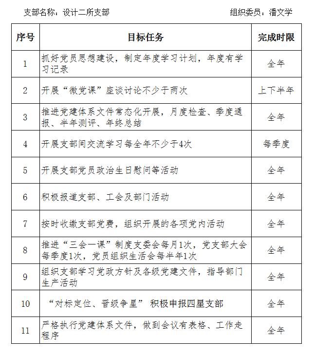 2019年支部委员目标任务清单--潘文学