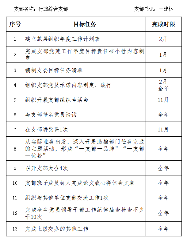 2019年支部委员目标任务清单--王建林