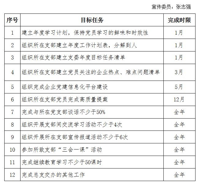 2019年党总支委员目标任务清单--张志强