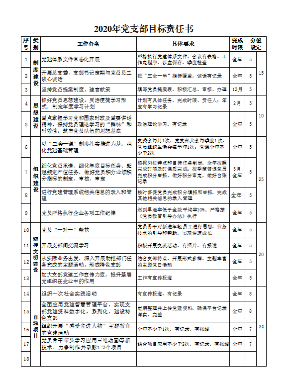 2020年测绘综合支部目标责任书