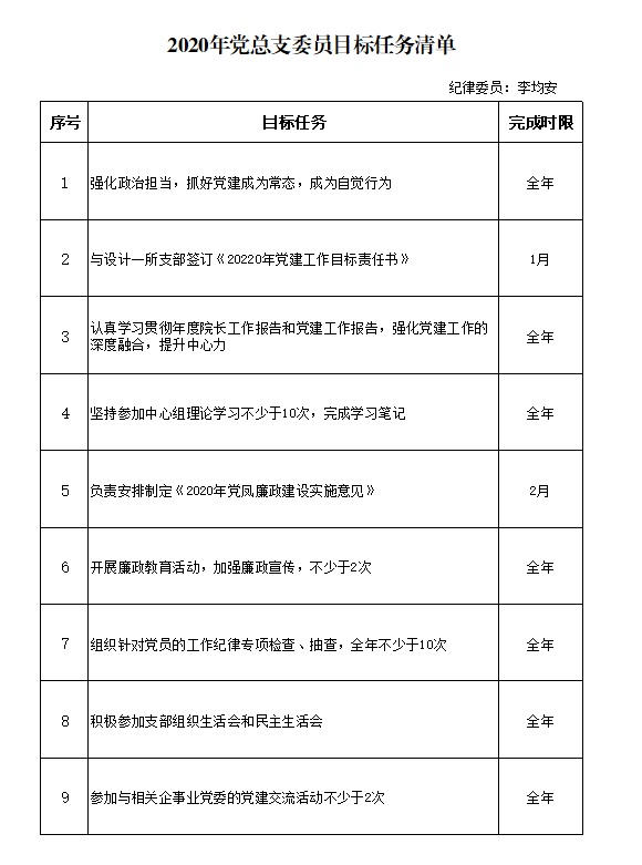 2020年总支委员目标任务清单(李均安)