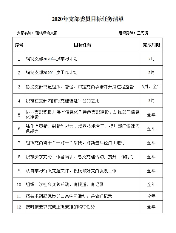 2020年测绘综合支部委员目标任务清单(王海涛)
