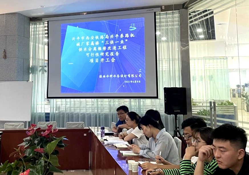 6月8日上午,《兴平市西安铁路局兴平养路机械厂家属楼“三供一业”供水分离维修改造工程可行性研究报告》及《陕西省丹凤县丹江“一河一策”方案》项目组在水科水务公司会议室召开项目开工会。