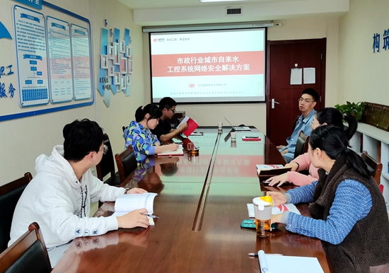 会上,技术人员首先介绍了城市自来水工控网络安全形势、网络安全现状和网络安全解决方案。随后从对标等保2.0、关保合规性方面,讲解了安全通信网络、安全区域边界、安全计算环境、安全管理中心等对应的安全技术和产品。参会人员结合工作实际,以市政供水网络安全为例,咨询了工控主机卫士、工业防火墙、工业互联网防火墙、工控安全监测与审计、工控漏洞扫描等信息安全设施设备的部署方案,结合公司承担的供水工程信息化设计项目,就网络安全方面需要关注和改进之处进行探讨,同时还延伸至信息系统网络安全防范措施、信息系统等保要求技术实现等方面进行了交流、咨询。