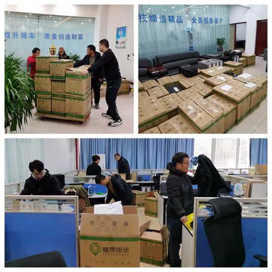 10月中旬,水环境设计院召开院务扩大会针对两公司搬迁方案进行讨论研究,确定此次搬迁中涉及的部分人员岗位职责变动、资产交接、人员座位安排、办公环境维护、物业对接、标牌更换等细节内容,并达成一致。为提高搬迁效率,两公司员工于前一天完成个人办公物品和资料的打包装箱,6日一大早,迎着古城西安入冬后的第一场雪,满载打包箱的两辆货车往返于凤城十二路和凤城五路两处办公场所,两公司员工于当天全体在岗,完成个人工位物品归整和卫生打扫工作,保障新一周工作的无缝衔接。