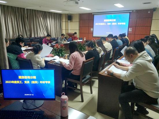 1月11日下午,规划咨询分院组织召开2023年度员工绩效考核暨月度部门例会,会议由郑云云院长主持,邀请主管领导余金龙副院长参会指导,陈前玲副院长、张蕾总工及规划分院员工参会。