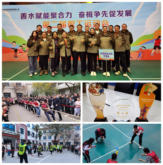 11 月 3 日至 8 日,陕西水务发展设计集团第二届职工运动会圆满举办。我院选派 53 名运动员组成代表队参赛,在为期 5 天的激烈角逐中表现亮眼,最终斩获羽毛球混合团体竞赛第一名、拔河竞赛第二名,以优异战绩拿下团体总分第三名的好成绩。