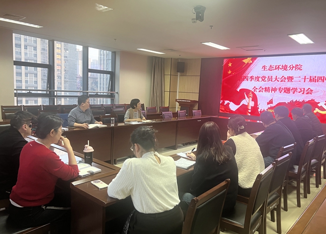 12月26日下午,生态环境分院党支部在院9楼会议室召开第四季度党员大会,并以支部书记讲第四季度党课形式开展了二十届四中全会精神专题学习,会议由支部书记王淑贤主持,全体党员参加。