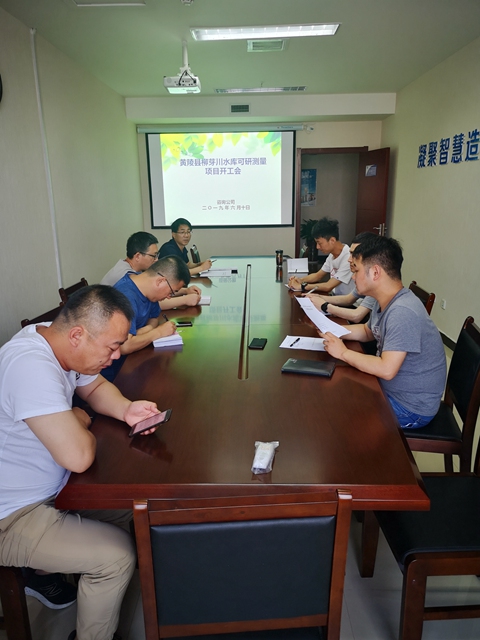 咨询公司接到院下达《黄陵县柳芽川水库可研测量》项目任务后,项目负责人杨秉澍与设计项目经理对测区进行了踏勘,对测区已有的平面、高程控制点进行查勘,对测区,纵向、横向范围进行现场确认,并于6月10日上午召开项目开工会。
